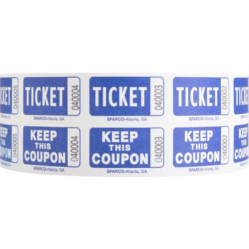 Tickets with a coupon help control admission to events. Each ticket is preprinted with the message, "Ticket" on one half and "Keep this Coupon" on the other. Both halves of each ticket have the same number preprinted on them for easy tracking. Tickets are consecutively numbered. Each roll includes 2,000 tickets.